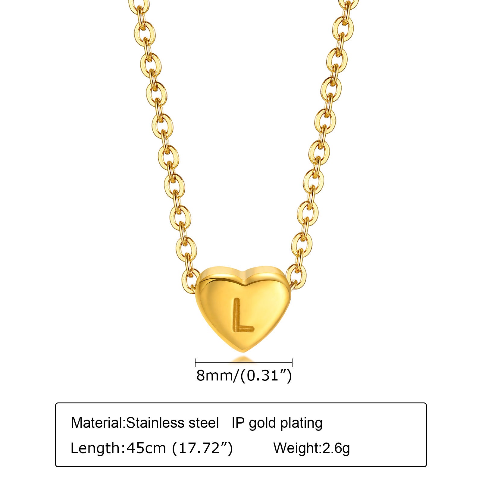 Stainless Steel 26-letter Heart Necklace